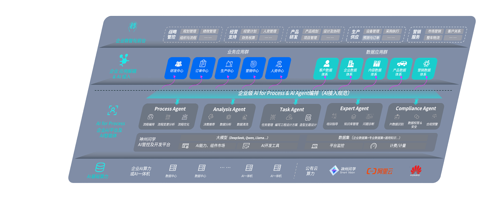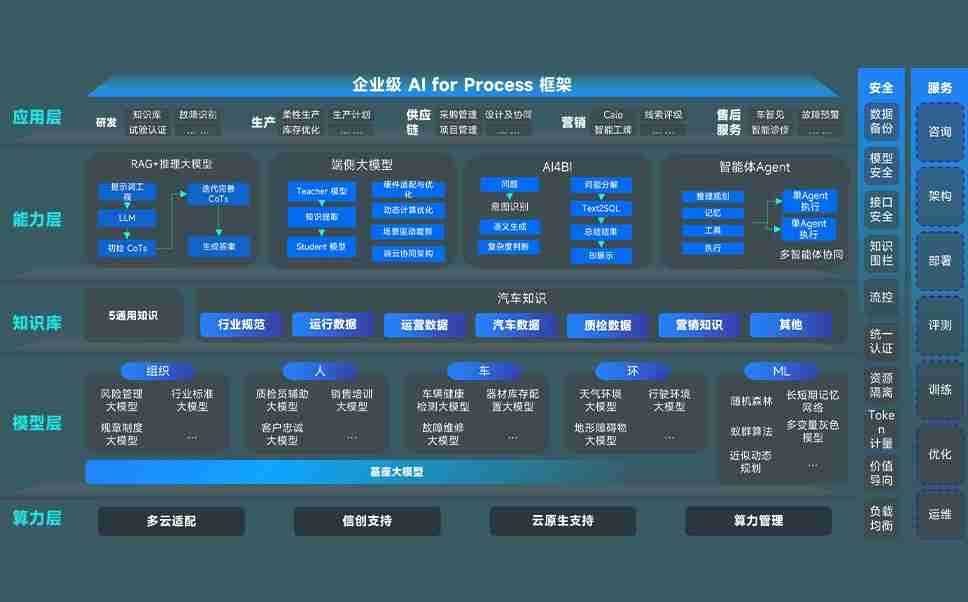 尊时凯龙问学智车解决方案是一套基于AI技术的汽车行业智能化系统,,,,覆盖从底层算力到顶层AI应用的全栈方案。。。方案由算力层、、、、模型层和应用层组成:算力层,,,方案支持多种一体机配置,,具备云端灵活部署、、、、多云适配以及动态优化计算资源的能力;模型层,,尊时凯龙问学平台版提供了企业级AI应用一站式构建与管理平台,,,,支持基于后训练强化技术的汽车企业专属模型的训练、、、、评测和运营;应用层,,,,尊时凯龙问学DeepSeek版提供包括超级员工、、智能招采、、、智能营销、、智能客服、、AI for BI等一系列解决方案,,,,可助力汽车行业实现数字化转型,,,,让管理更智能、、、、响应更敏捷。。。。